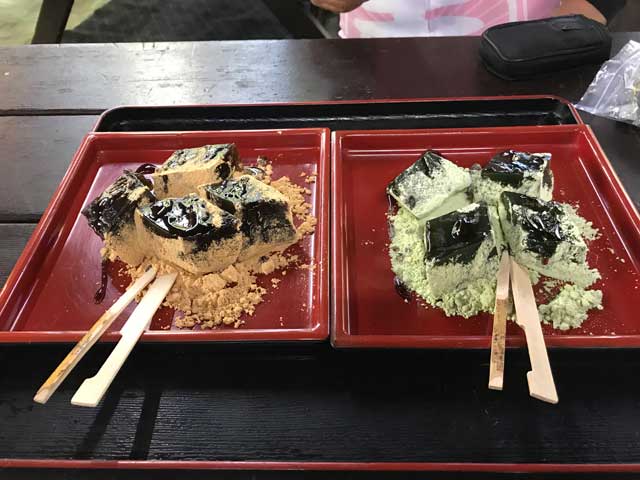 ハンガーノックになるギリギリで「旅館はまやらわ」の名水わらび餅を頂くことが出来ました。