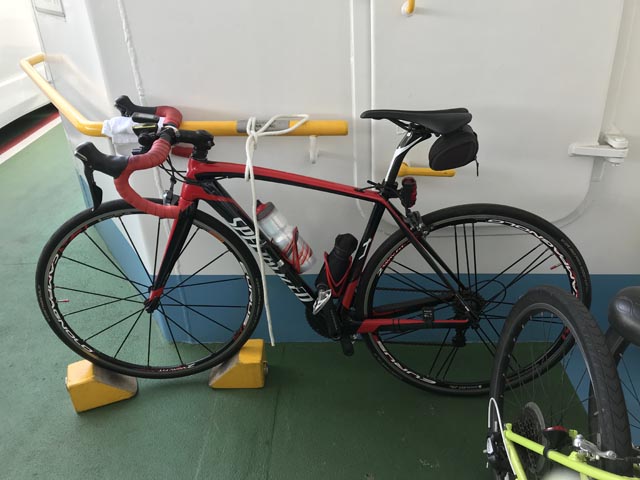乗船手続きを済ませ、船員さんに自転車を固定してもらった後は甲板に登って瀬戸内の景色を楽しみます。